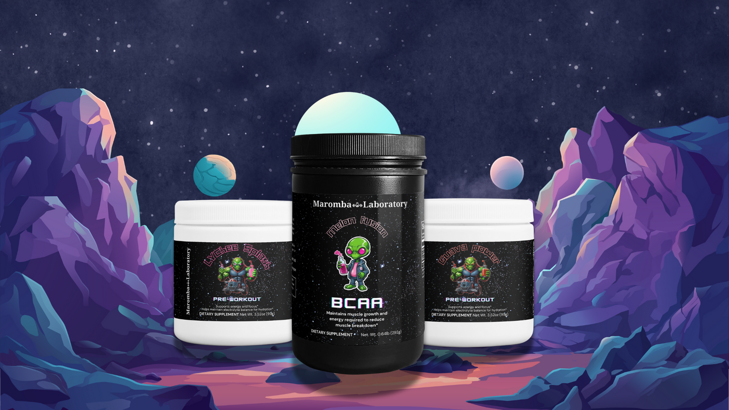 Experience out-of-this-world performance with Maromba Laboratory's Area 51 BCAA and pre-workout supplements. Elevate your endurance and muscle recovery with our scientifically formulated blends, perfect for pushing your limits and achieving stellar results.